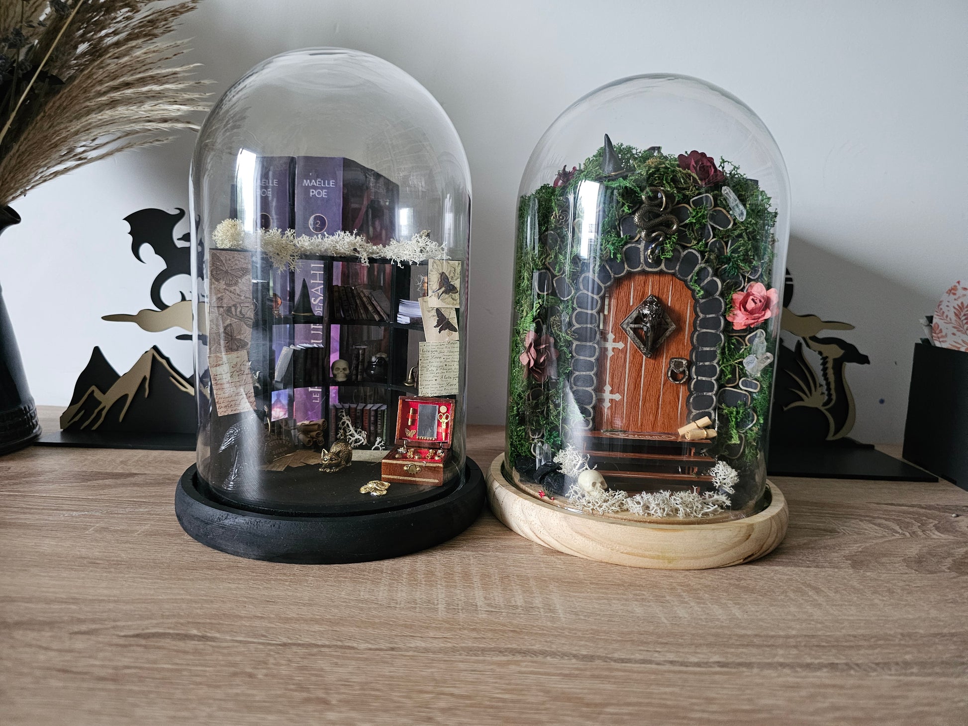 Laissez la magie des livres envahir votre intérieur avec notre décor sous cloche livresque, une pièce unique et délicate qui capture l’essence de la lecture dans une scène miniature. Que ce soit une bibliothèque enchantée, une porte perdue au milieu de la forêt, chaque création est une invitation à la rêverie.
