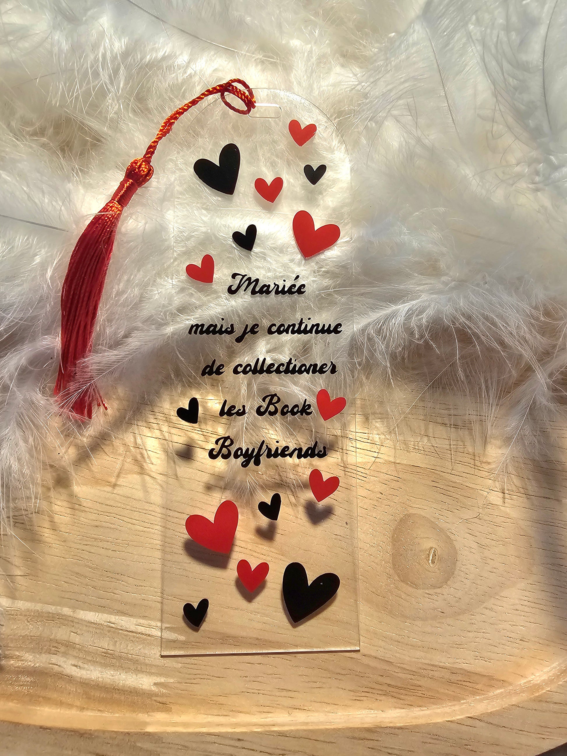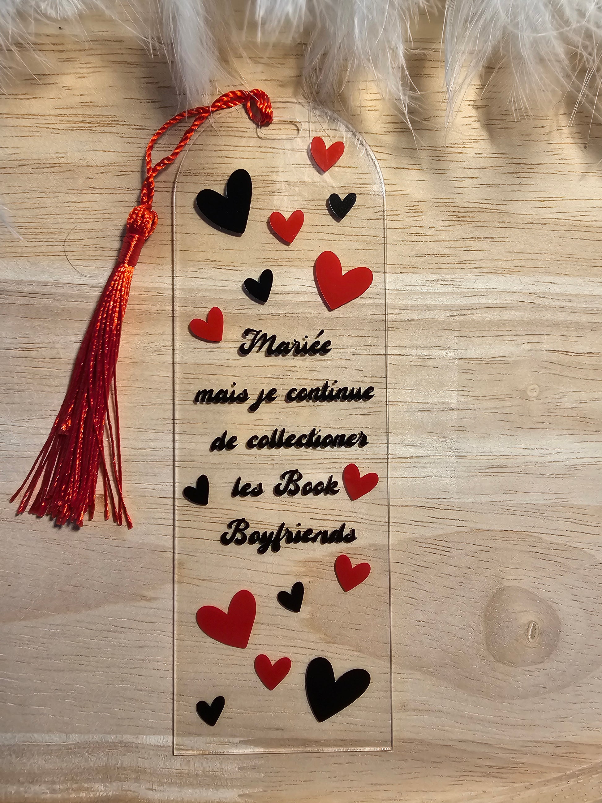 Marque-page en acrylique avec motifs en vinyle et son pompon