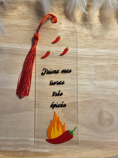 Marque-page en acrylique avec motifs en vinyle et son pompon